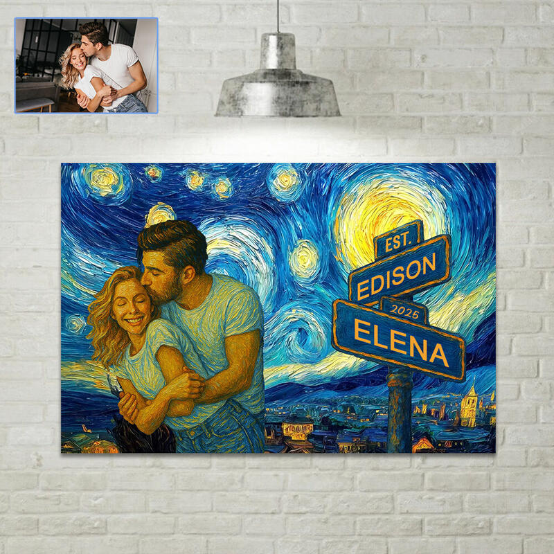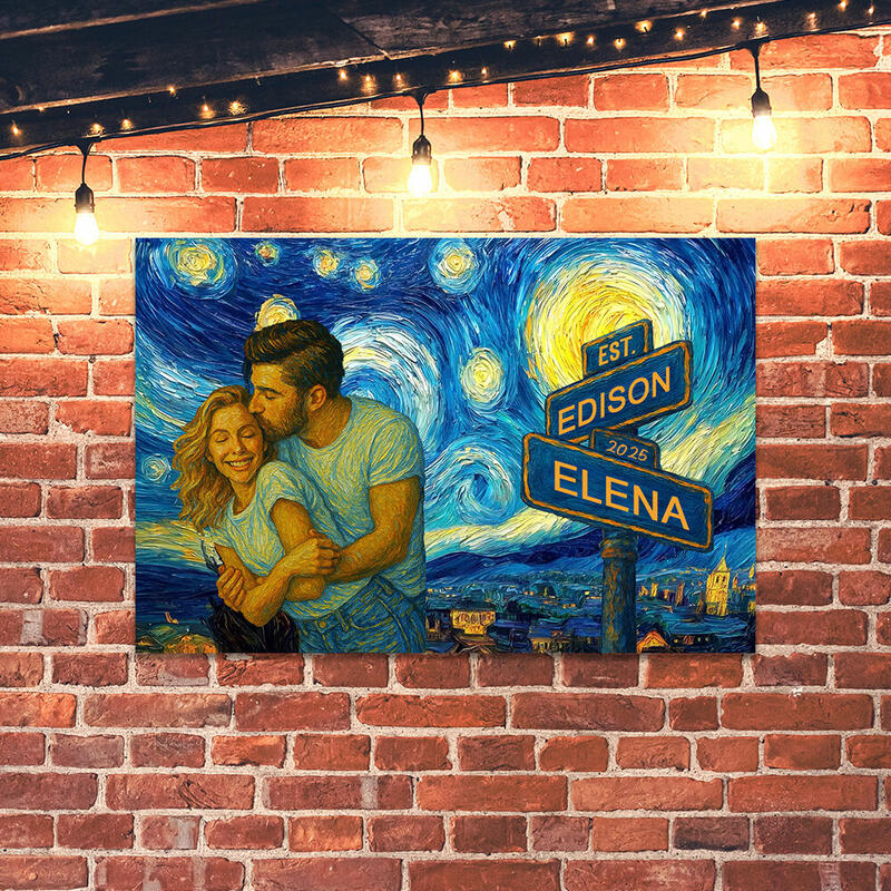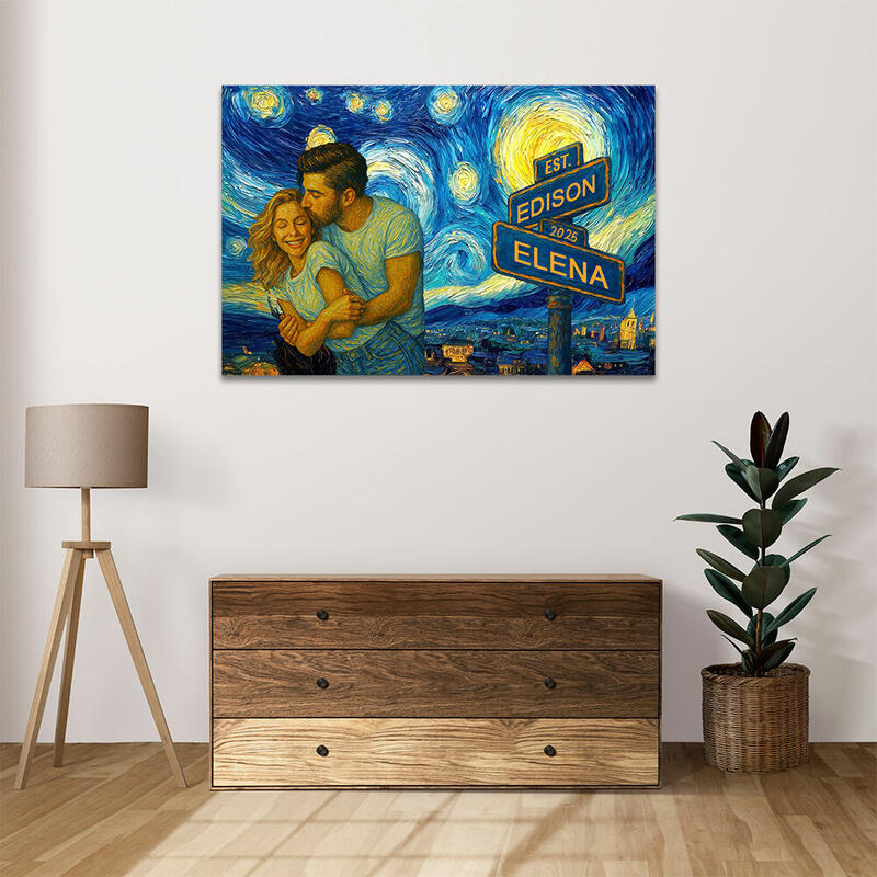 オーダーメイド 写真入り 名入り 漫画風 キャンバス壁画 道路標識デザイン付き カップル向け