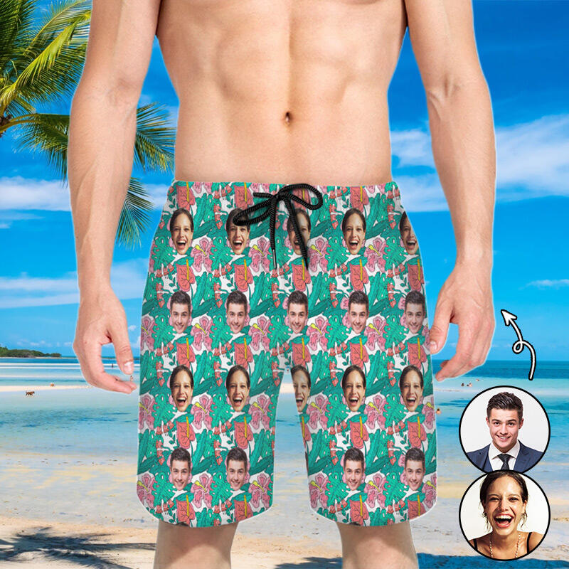 メンズ ビーチ ハーフパンツ 顔 写真 イラスト 似顔絵 オーダー ポリエステル