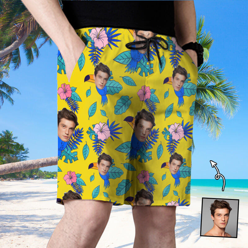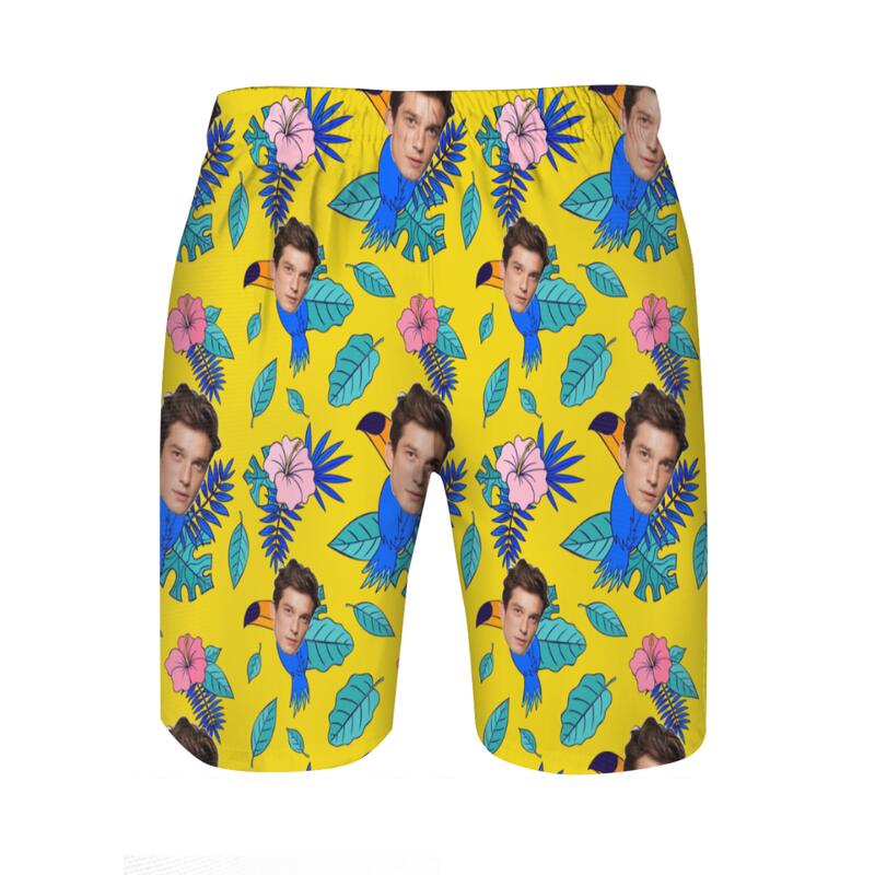メンズ ビーチ ハーフパンツ 顔 写真 イラスト 似顔絵 オーダー ポリエステル