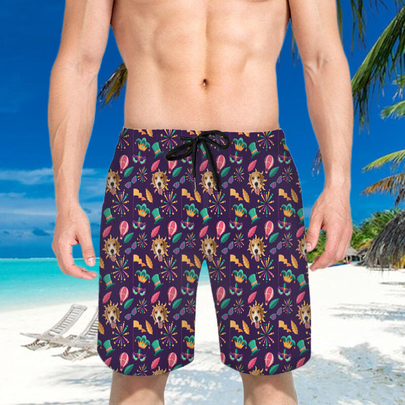 メンズ ビーチ ハーフパンツ 顔 写真 イラスト 似顔絵 オーダー ポリエステル
