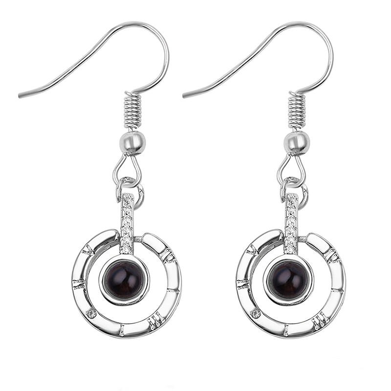 パッと見は普通のピアスのように見えますが、ライトを当てると思い出のある大切な写真が投影されます。