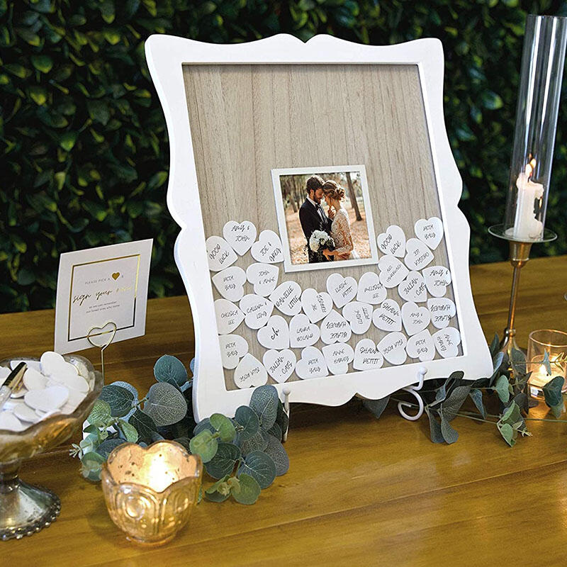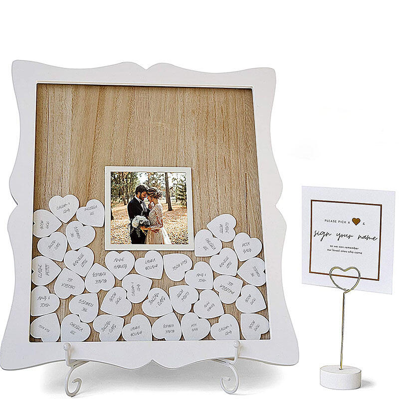 スクエア ウェディングドロップス 芳名帳 結婚式 木製 写真入れ カスタマイズ