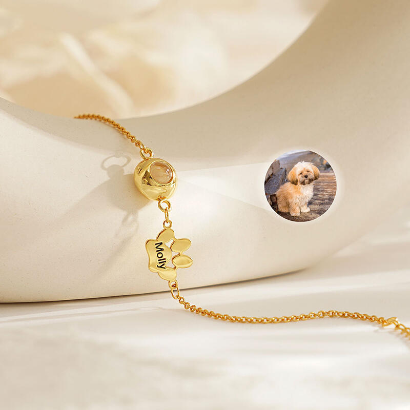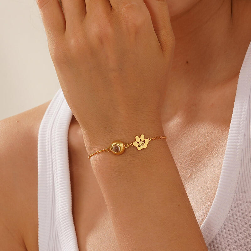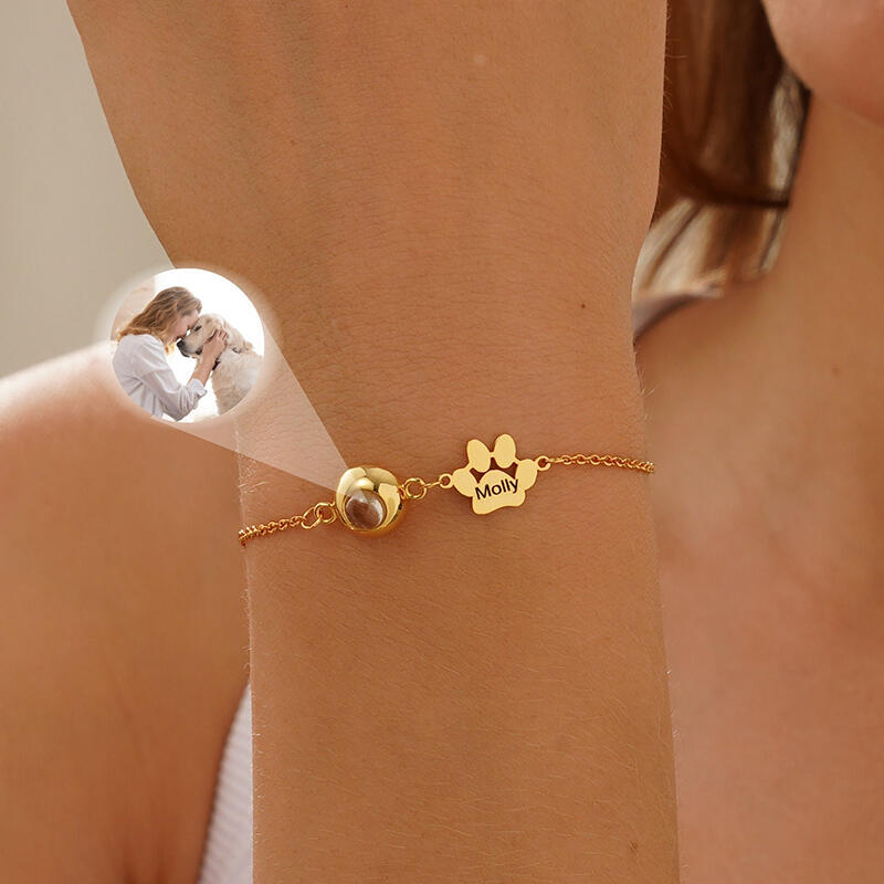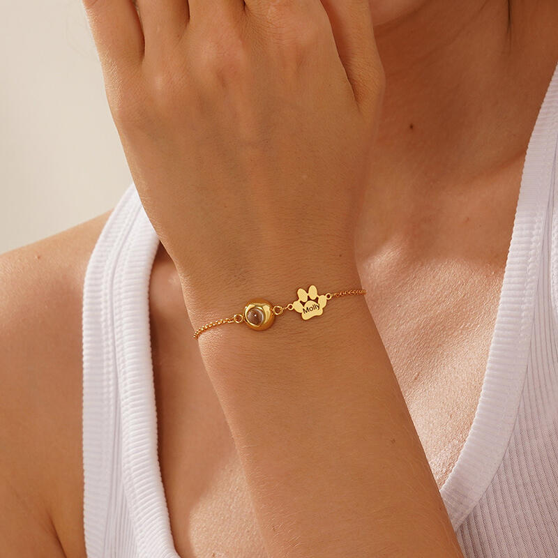 パッと見は普通のブレスレットのように見えますが、ライトを当てると思い出のある大切な写真が投影されます。