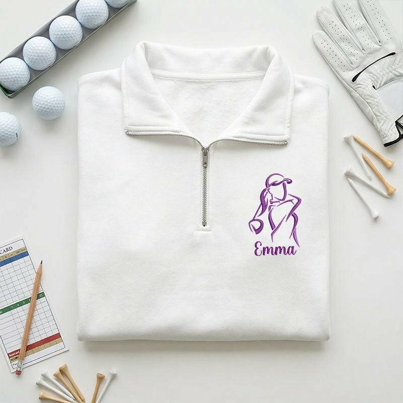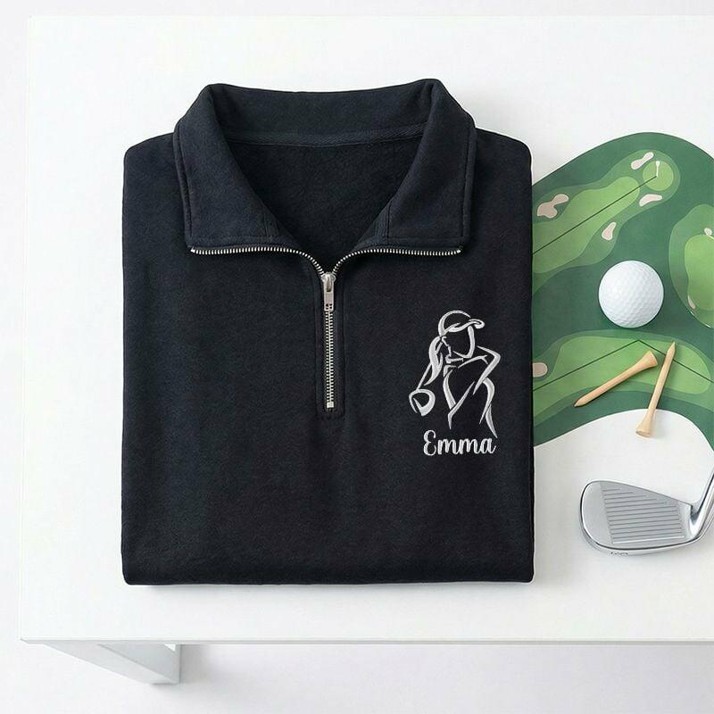 文字 刺繍入り ハーフジップ スウェット ゴルフ トップス オーダーメイド