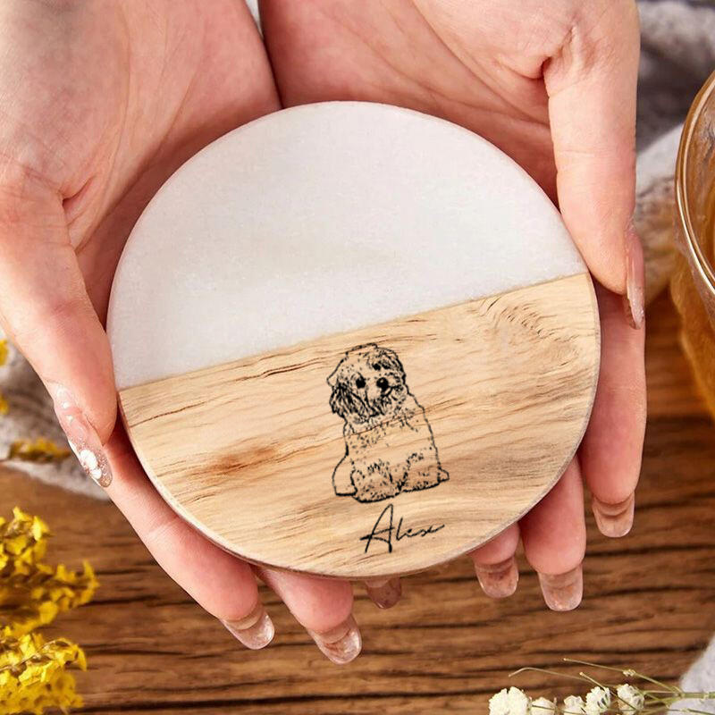 犬 猫 動物 写真入れ 名入れ コースター ラウンド 大理石 ウッド カスタマイズ
