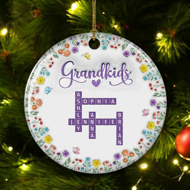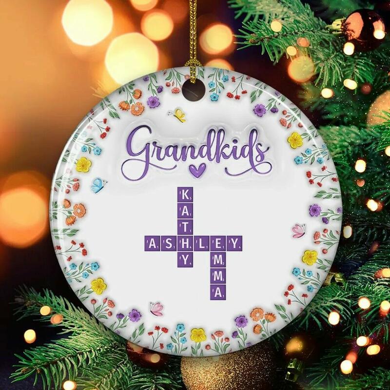 スクラブルオーナメント 名入り フラワー 花 クリスマスツリー 飾り プレゼント 祖父母 カスタマイズ