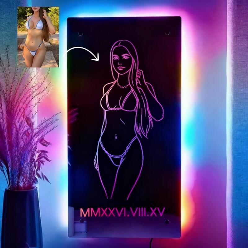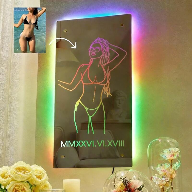 カスタマイズ 写真 ローマ字 LED ミラー 発光 ライト 壁掛け 12色変化 屋内装飾 リモコン付き 壁フック付き