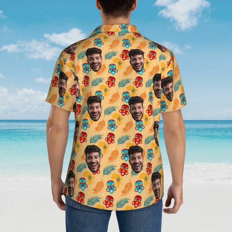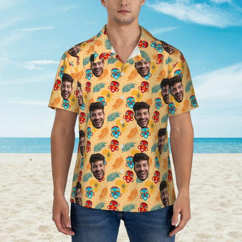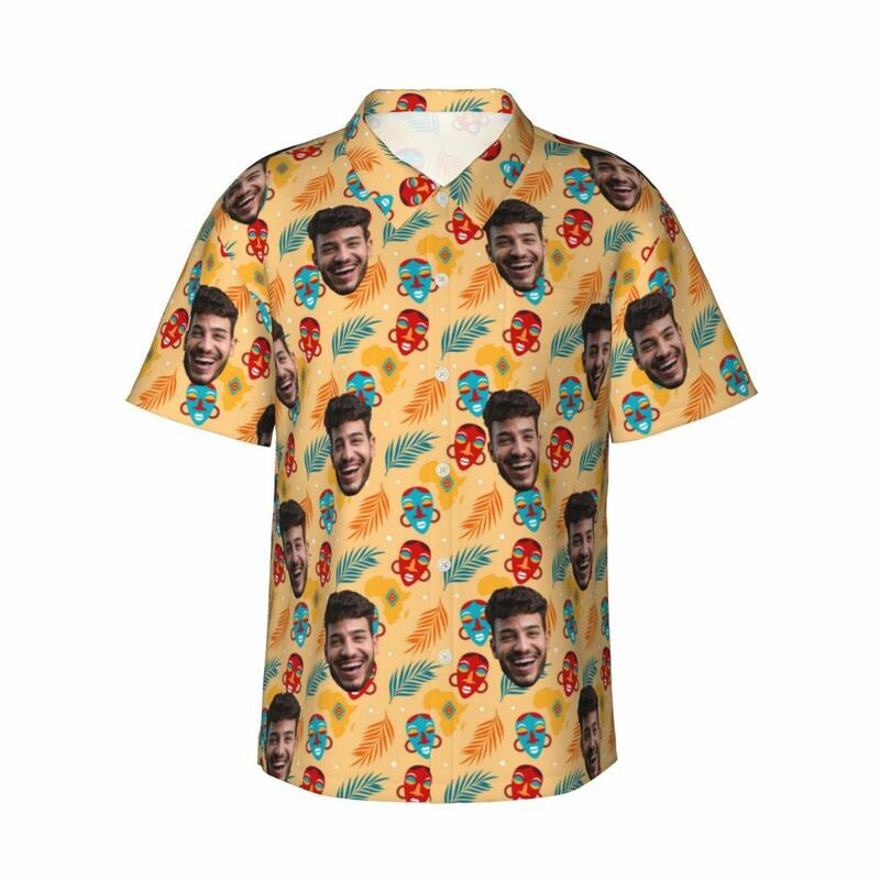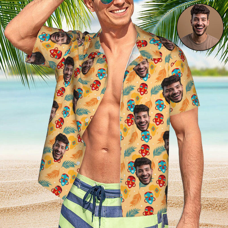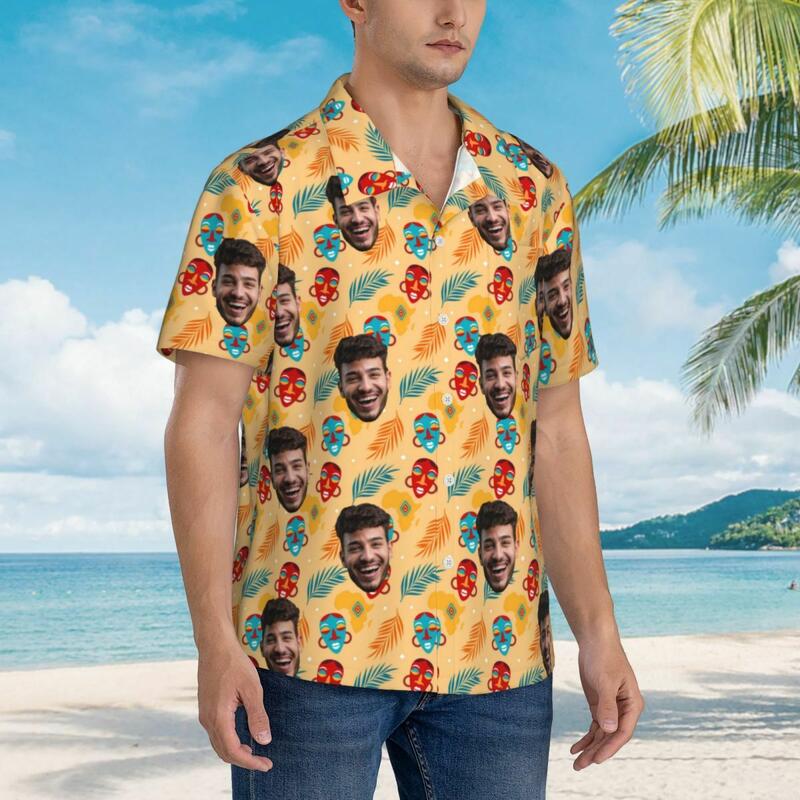 顔写真 似顔絵 総柄 ハワイアン シャツ メンズ 開襟 ポリエステル