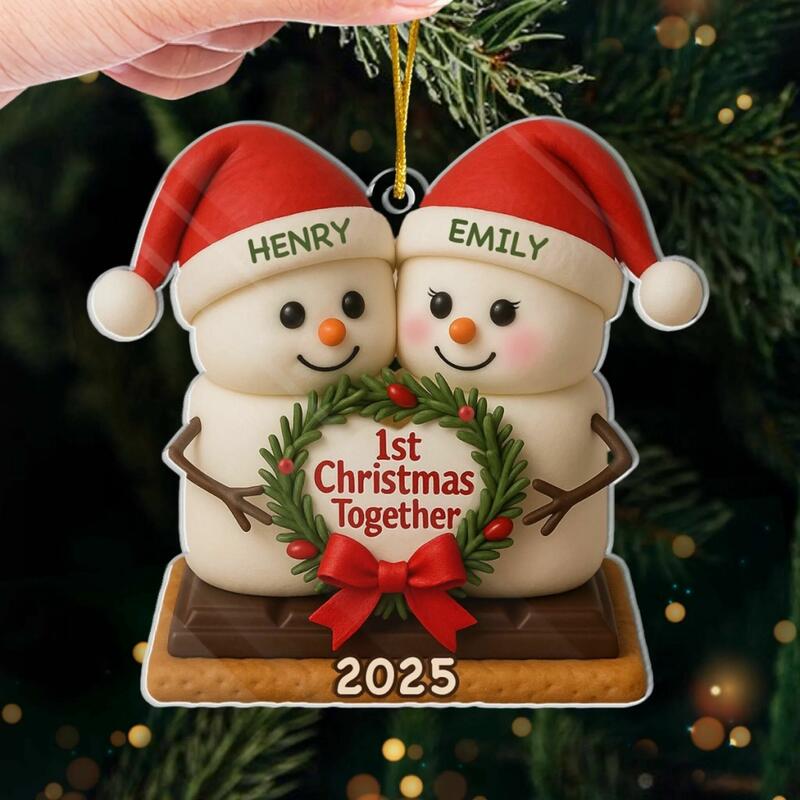 スノーマンペンダント 雪だるま オーダーメイド カップル 名前入り 飾り クリスマスプレゼント