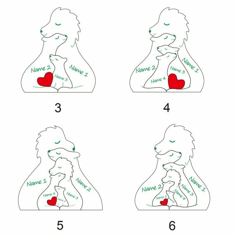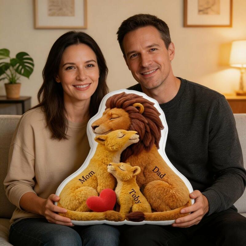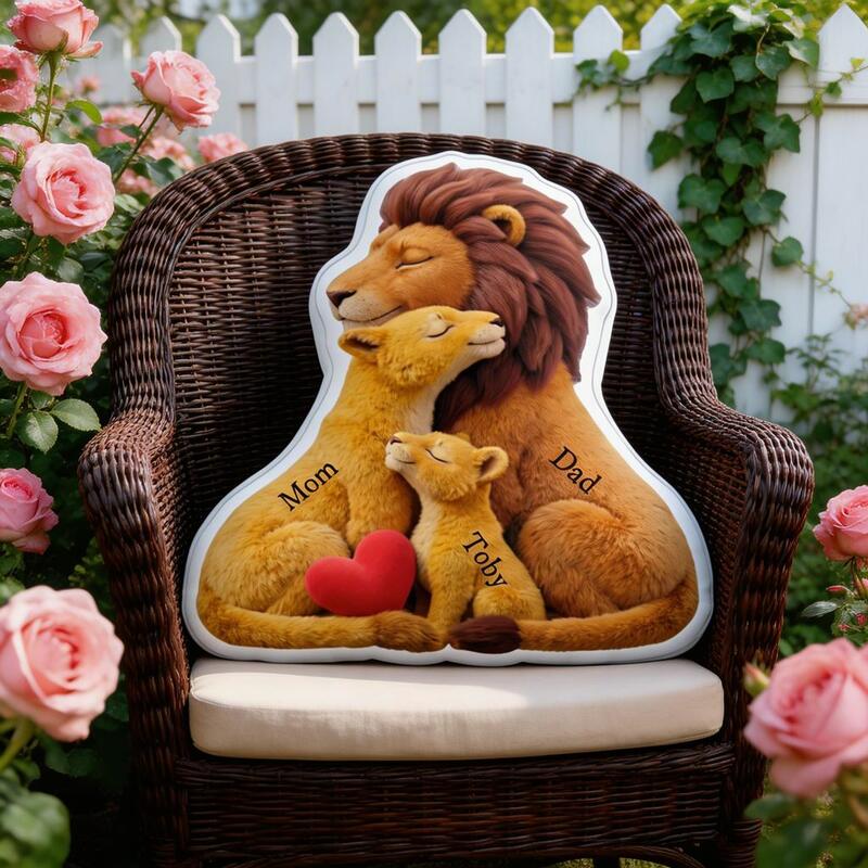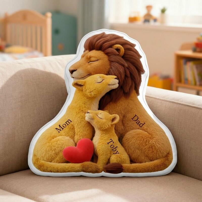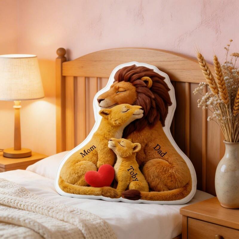 クマ・ライオン・ゾウなどの動物ファミリーが寄り添う、あたたかいデザインのクッションです。