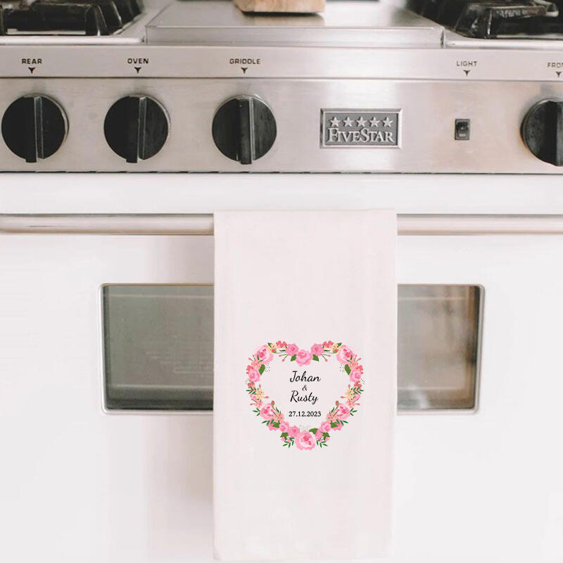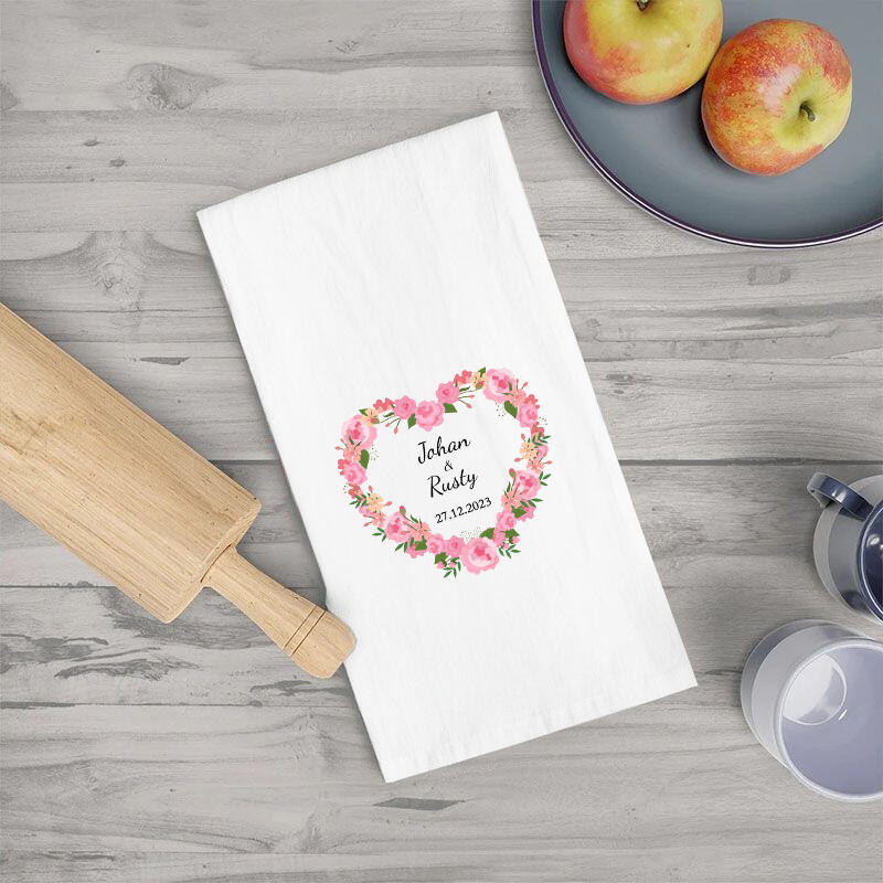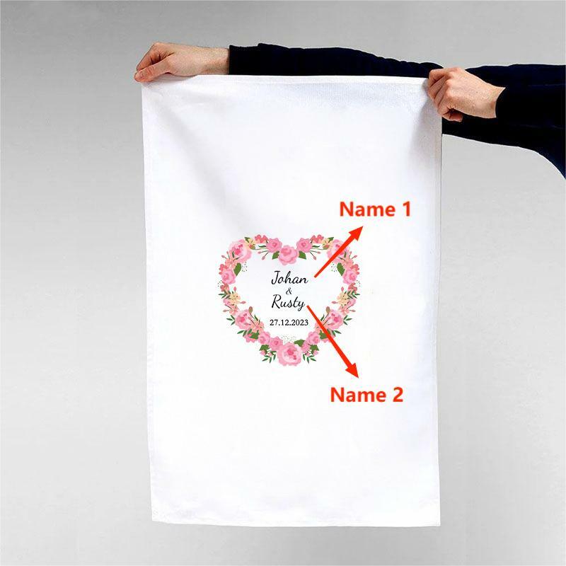 花輪デザイン 名入れ 日付 タオル 手ふきん カスタマイズ