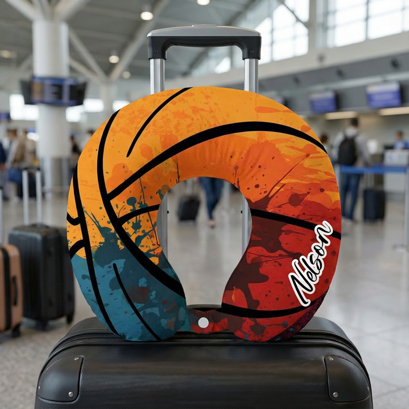名入れ ネックピロー U字型枕 グラフィティバスケットボール柄 カスタマイズ