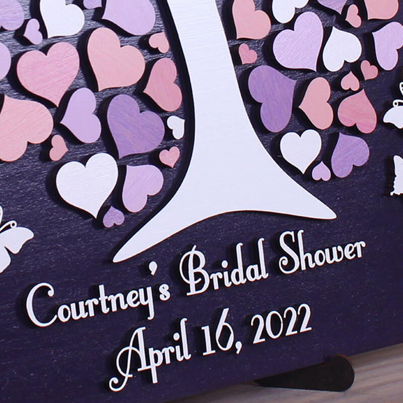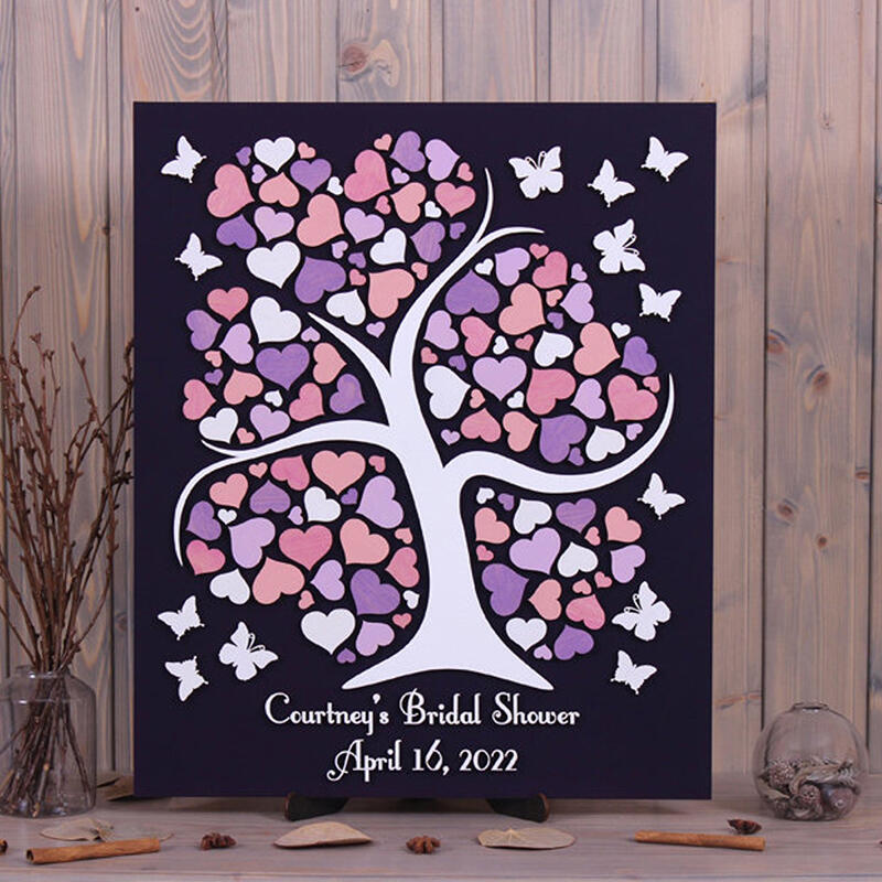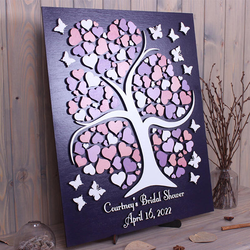 カスタムイズ 名入り 日付き ツリー バタフライ パープルハートチップ 木製 ウェディングドロップス 結婚式 披露宴
