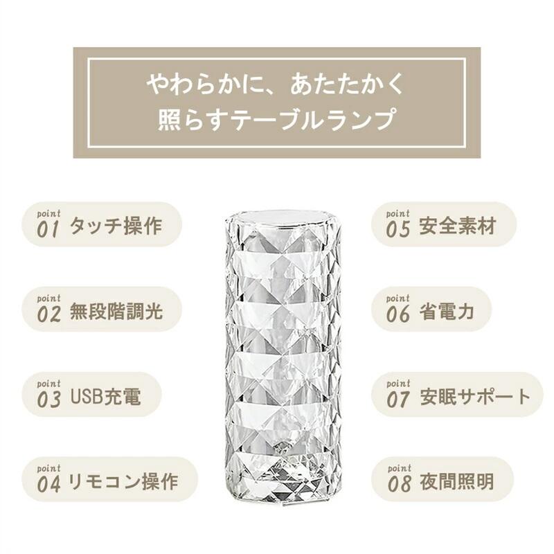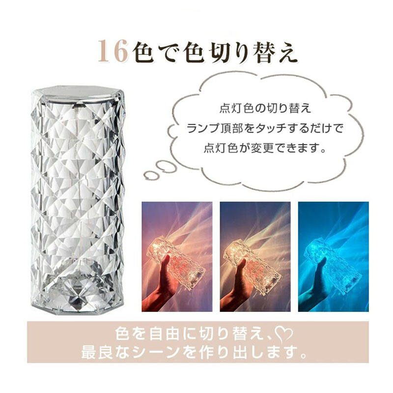 クリスタル ランプ デスクライト タッチ操作 16色 明るさ調整 リモコン操作 USB充電 間接照明 インテリア