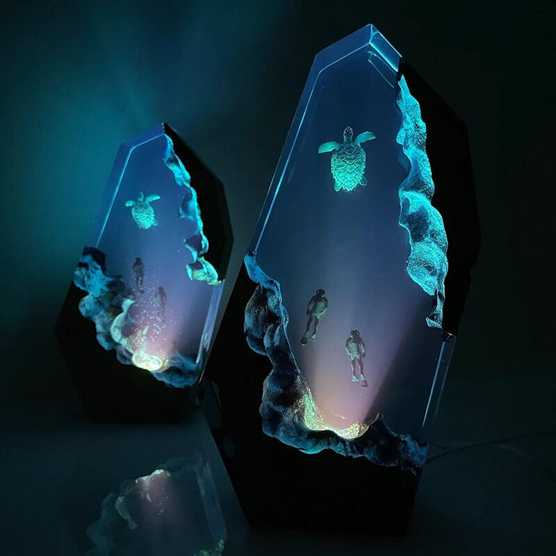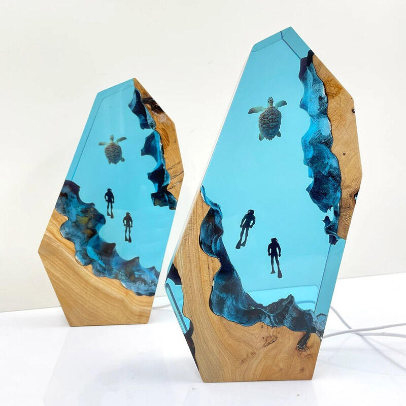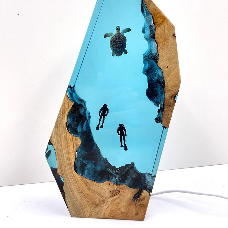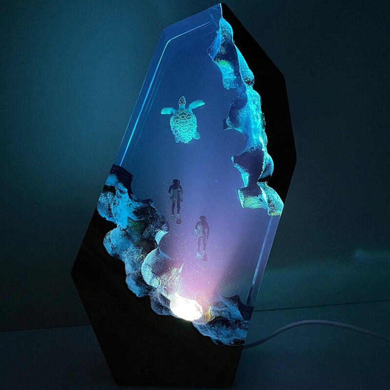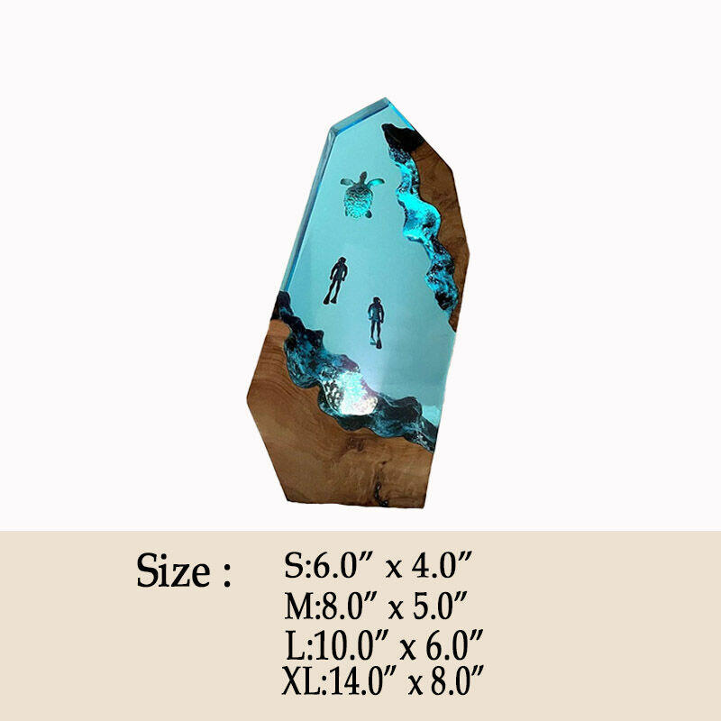 ウミガメ カップルダイバー 幻想的 樹脂 ウッド ナイトライト 家族 ギフト
