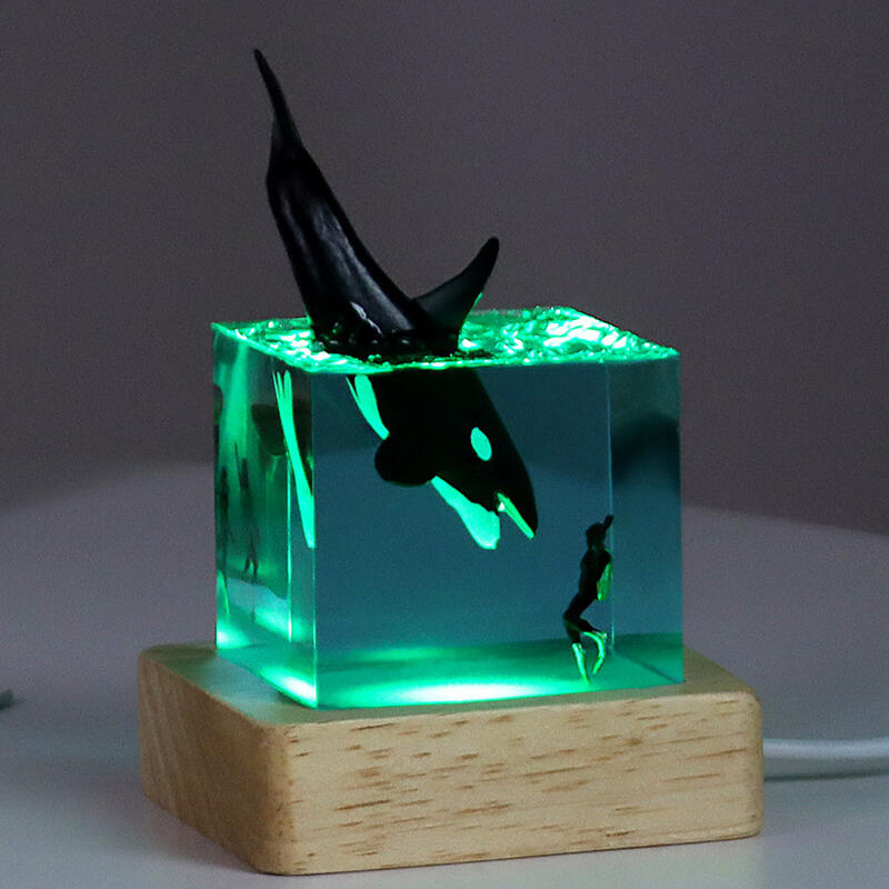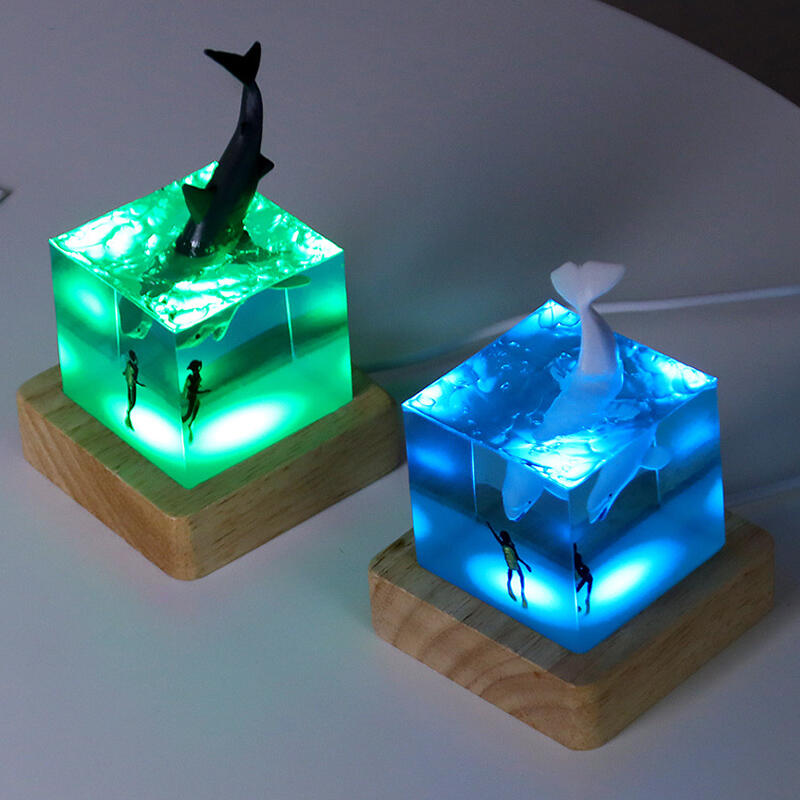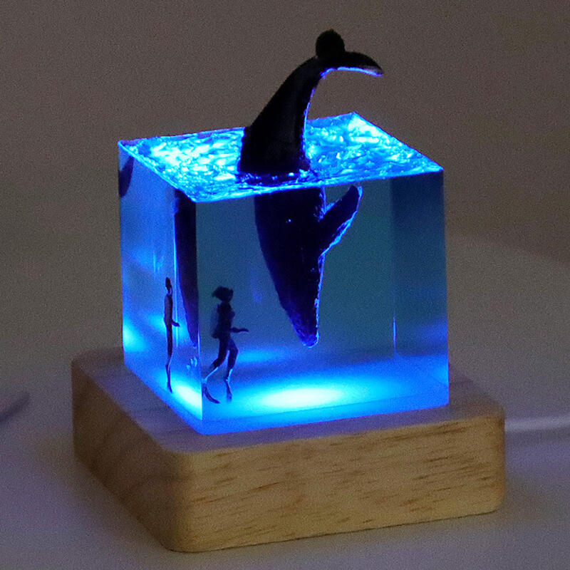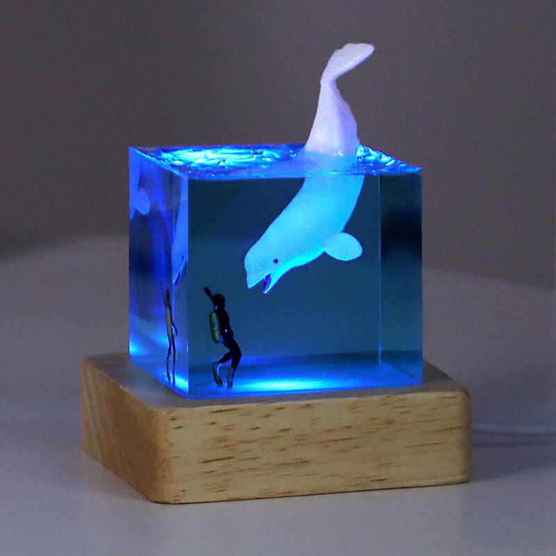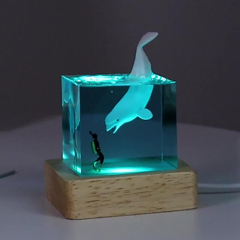 クジラ 鯨 夢幻的 樹脂 ウッド ナイトライト ランプ ギフト