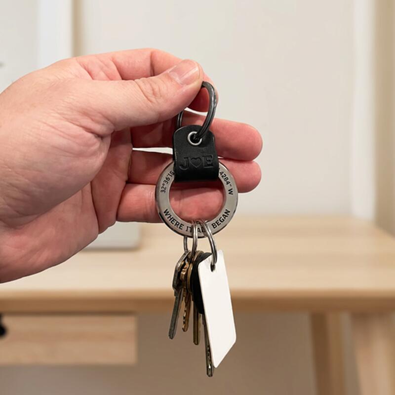 最大のポイントはカスタマイズ。名前、記念日、初めて出会った場所などの思い出の場所、短い文字などを自由に刻むことができ、シンプルなキーホルダーを唯一無二の思い出の品に変えます。金属表面は鮮明でクリアな彫刻が可能で、長期間にわたり鮮明さを保ち、レザーストラップが温かみと汎用性を加え、どんな鍵やバッグスタイルにも馴染みます。