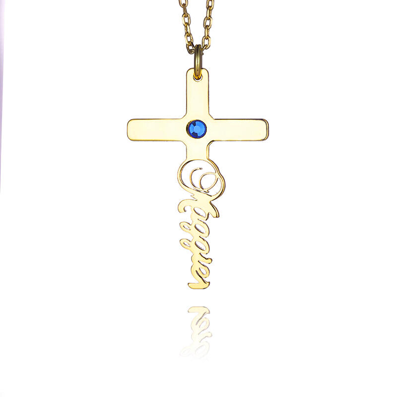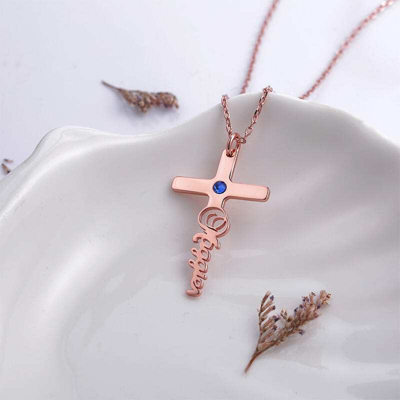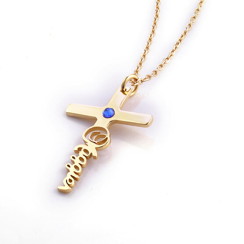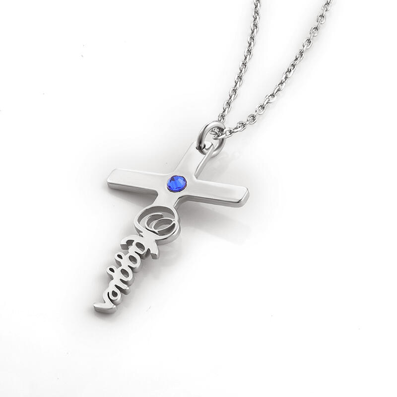 クロス 十字架 ネーム 誕生石 ネックレス